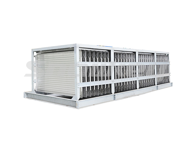 The evaporator is open type design, the freezing plate surface , water spray span, water channel is easy to clean.