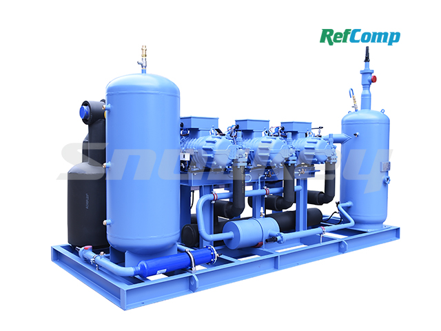 With the inheritance of compression technology from RefComp, Snowman introduces high- end RefComp compressor (condensing) units SW3H Series with power range of 150- 1000HP, including two options: water- cooled compressor (condensing) units and compressor units. SW Series high temp screw compressors are packaged with high- efficiency oil separator, and have wide application scenarios. The design and layout of all the components maximize the reliability and maintainability for on- site operation. Components of the units: RefComp compressor, oil separator, (condenser), economizer, liquid receiver, control center, etc..