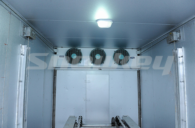 • 用于存储制冰机生产的冰。当用冰点在短时间内需要大量用冰的情况下,储冰库可以自动地输送冰,以满足用冰需求。储冰运转过程中,耙冰机构将制冰机制下来的冰在冰库水平范围内耙平,达到冰库存储的上限后,控制系统自动停止制冰机的运行。当冰库内的冰位较低时,又将自动启动制冰机。