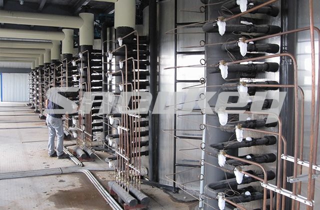 SNOWKEY根据多年的工程设计经验,开发出系列的矿井降温设备。整个系统主要由地面制冰系统(片冰、板冰)、输冰、融冰系统及地下输冷散冷系统组成。在矿井的立井附近设置制冰站,制冰站内制冰机生产出来的冰,用集合式螺旋输冰系统把冰输送到立井的落冰管(或配套通过罗茨鼓风机、空气冷却系统和送冰管路的气力送冰系统将冰送至落冰管)。井下设有融冰池,冰片进入融冰池融成冰水,冰水从融冰池中接出,用于工作面防尘和喷淋降温,从而有效降低了井下环境温度,提高生产效率。